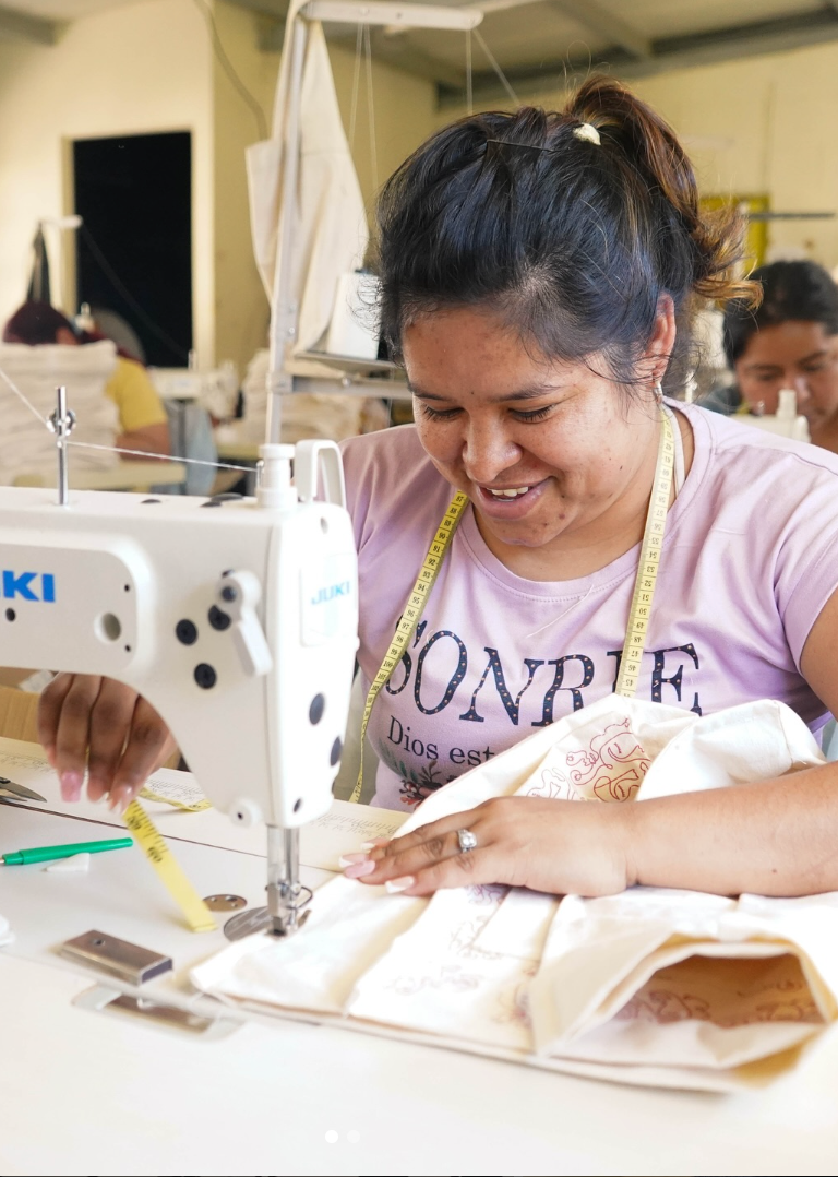 Each bag is packaged in a handmade dust bag created by the women of Mi Eelo, a women-led social impact studio in Guatemala. They use upcycled materials and traditional sewing as a tool for empowerment and circular design, because care doesn’t stop with the product.