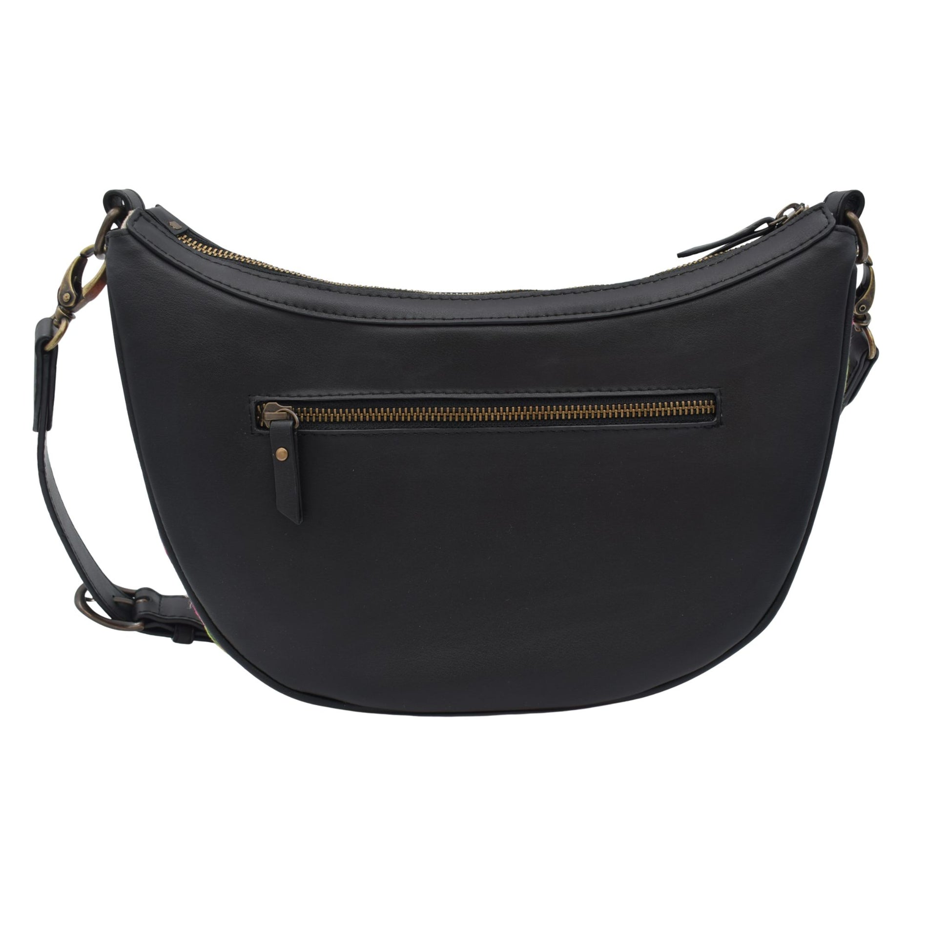 It features an adjustable strap, zipper closure, and a subtle blind-embossed logo.