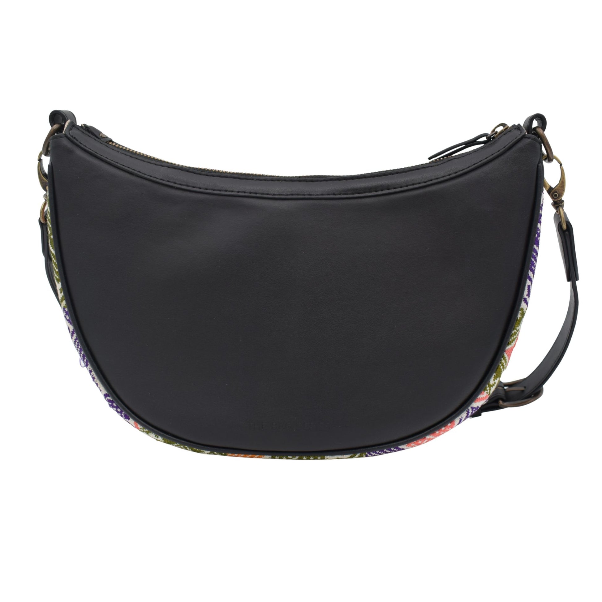 It features an adjustable strap, zipper closure, and a subtle blind-embossed logo.